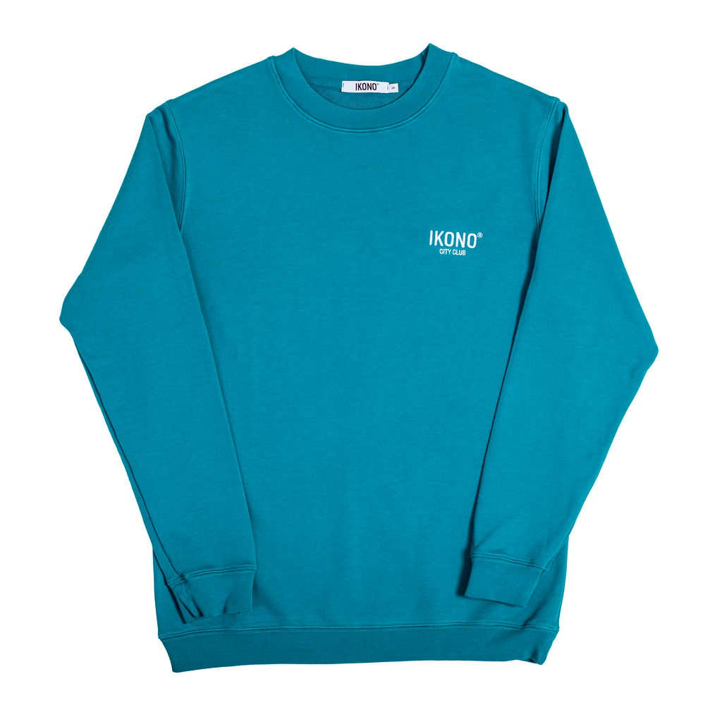 Emerald green unisex sweater  with "IKONO® CITY CLUB" embroidery on the left chest. Sizes run large, scale down 1 size for a tighter fit.