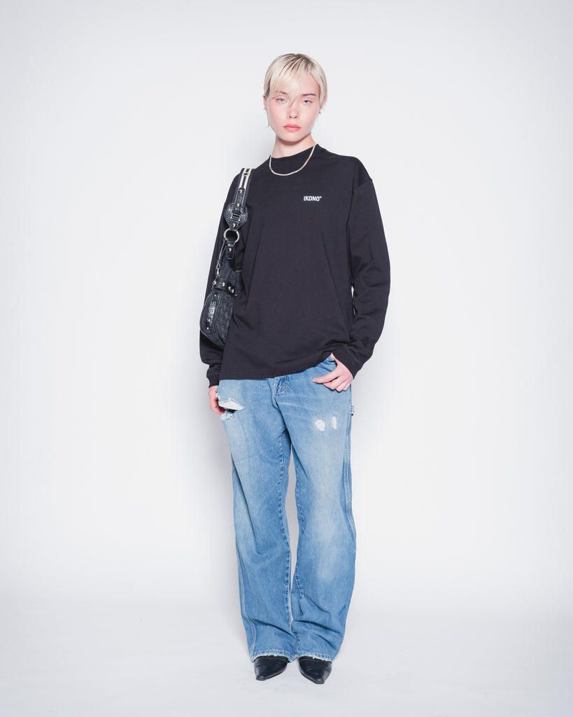 Black oversize long sleeve with "Club de Paradise 2024" print on back and embroidered IKONO® logo on chest