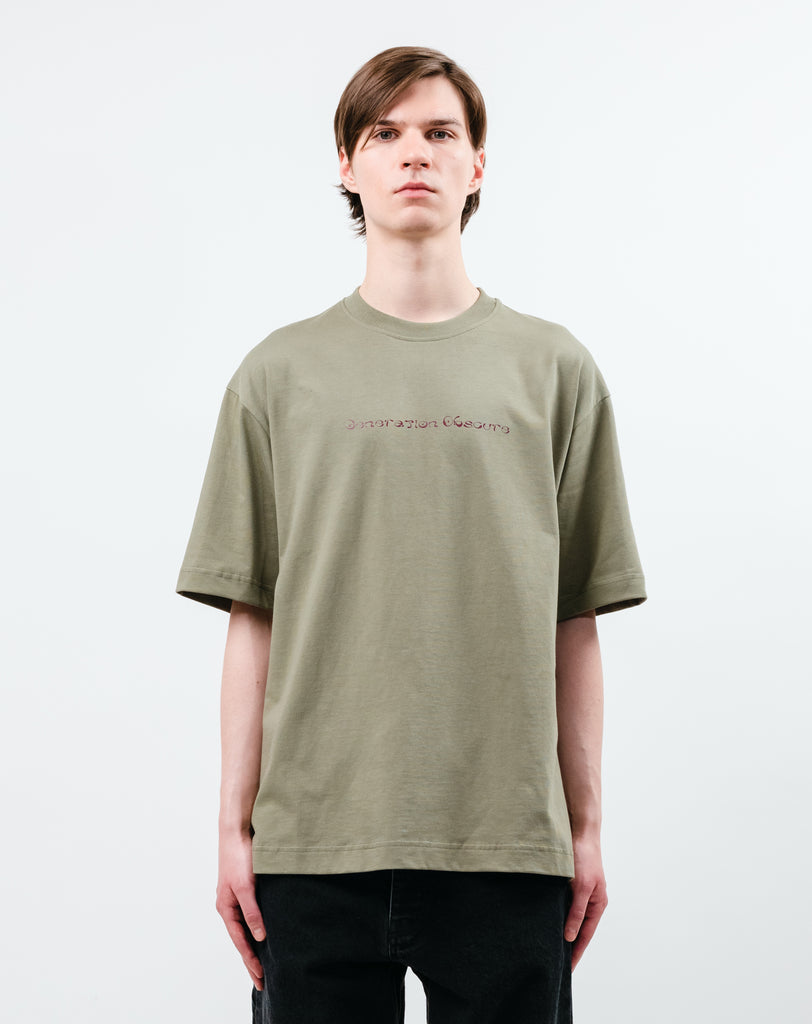 Olive green heavyweight t-shirt with "GENERATION OBSCURE" print