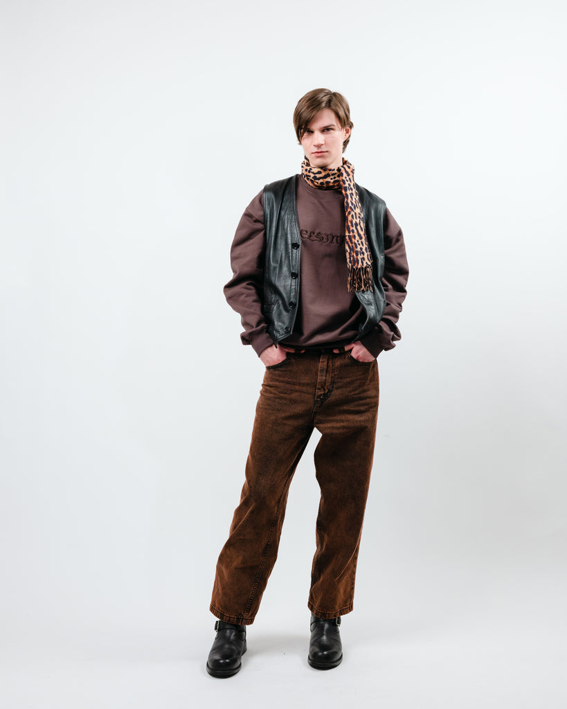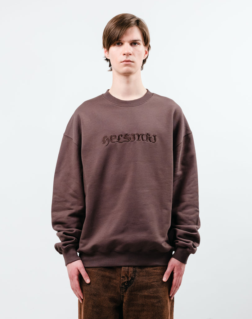 Brown heavyweight sweater with "HELSINKI" embroidery