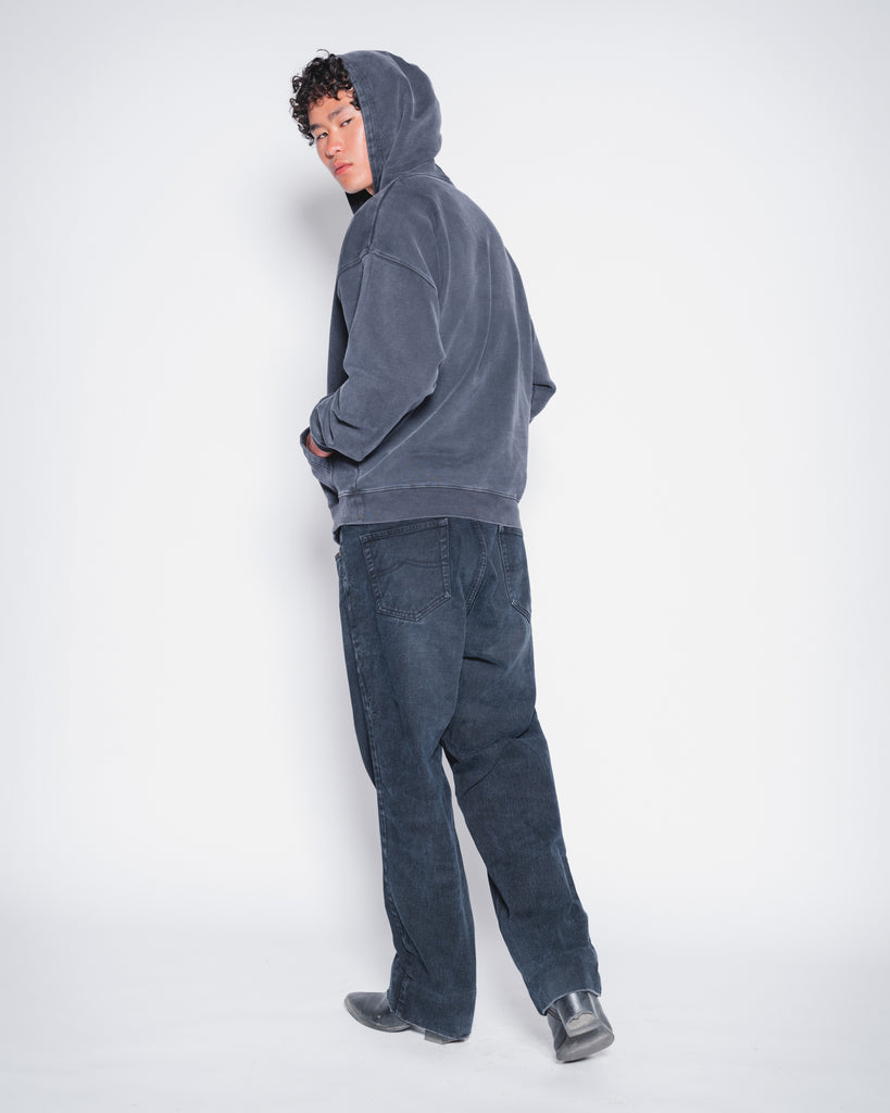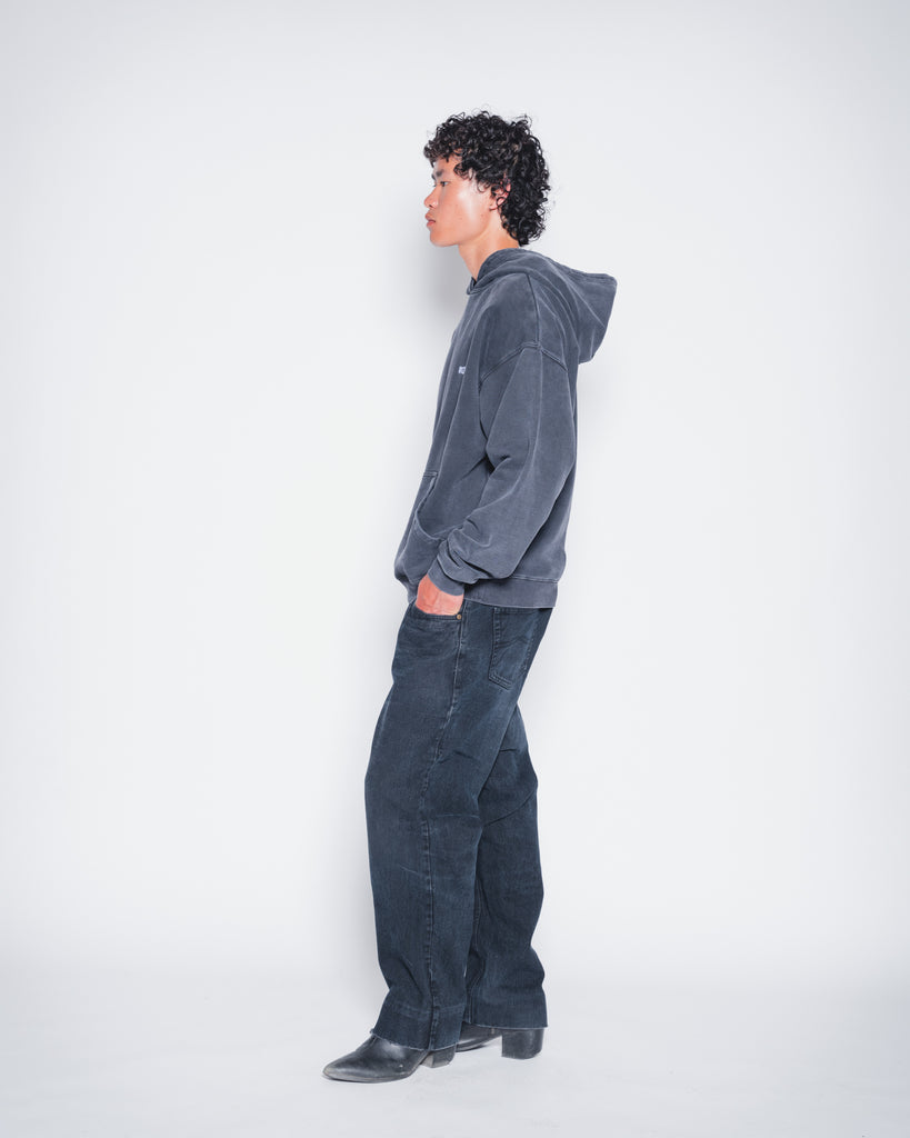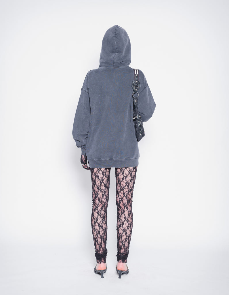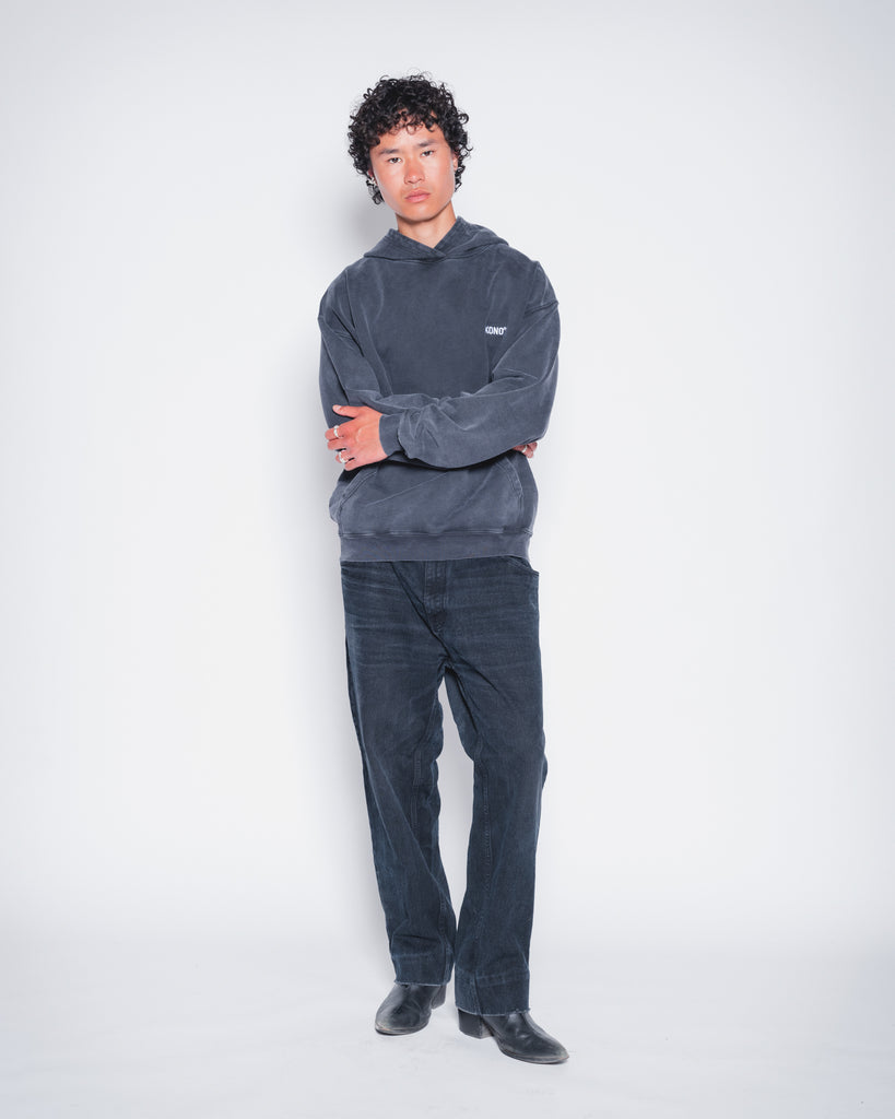 Washed black oversize hoodie with embroidered IKONO® logo on chest