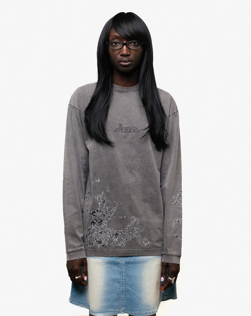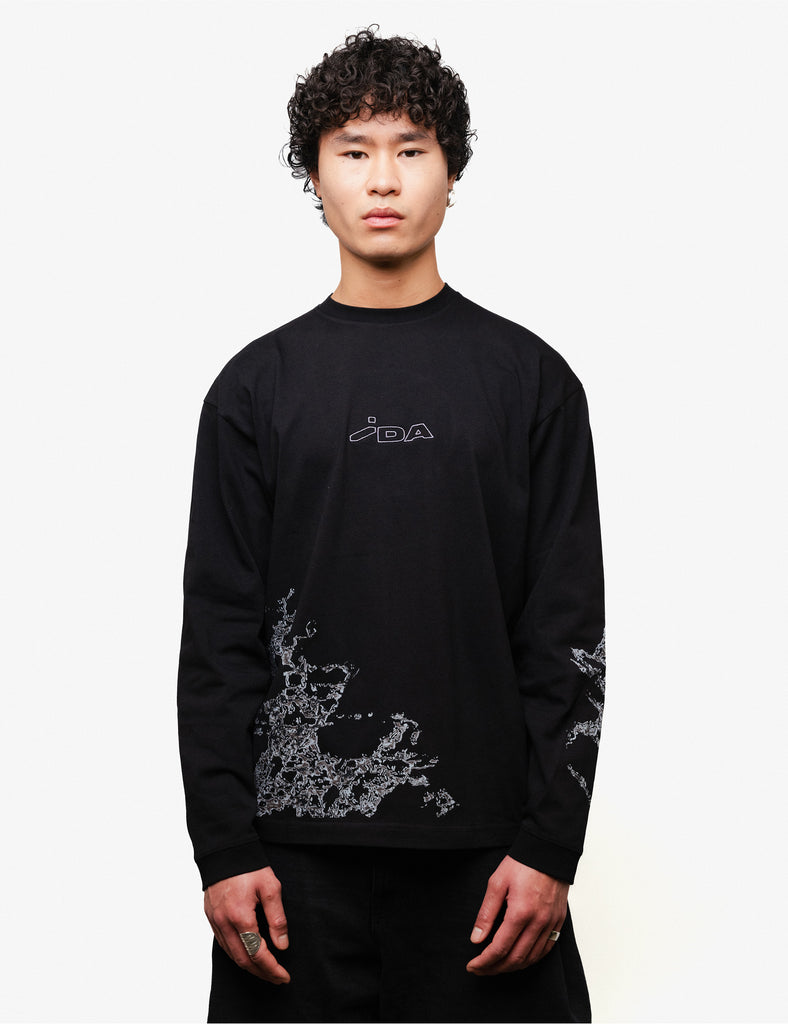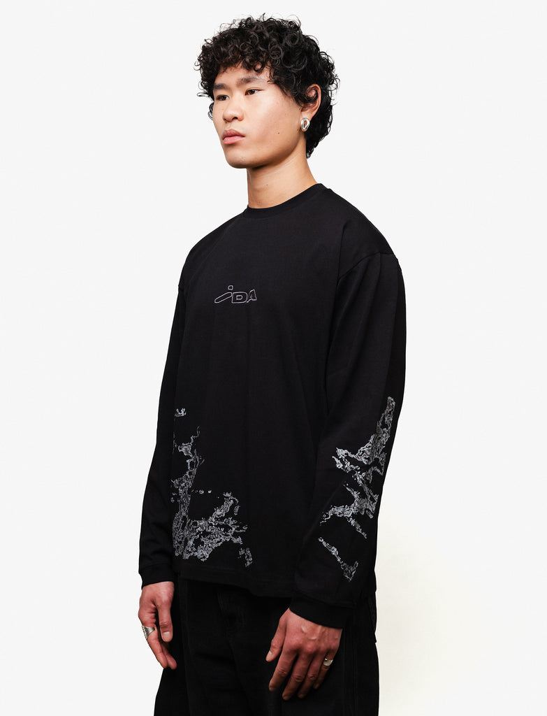 Black oversize longsleeve with two prints and embroidered IDA logo on chest