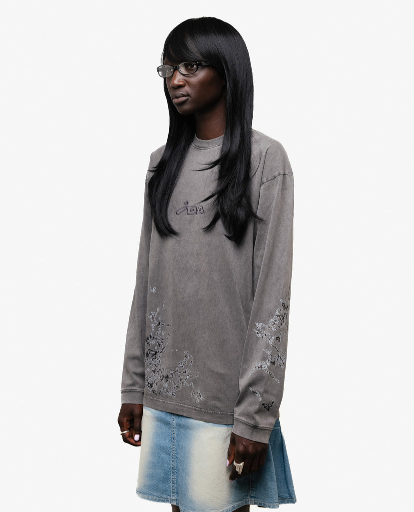 Washed gray oversize longsleeve with two prints and embroidered IDA logo on chest