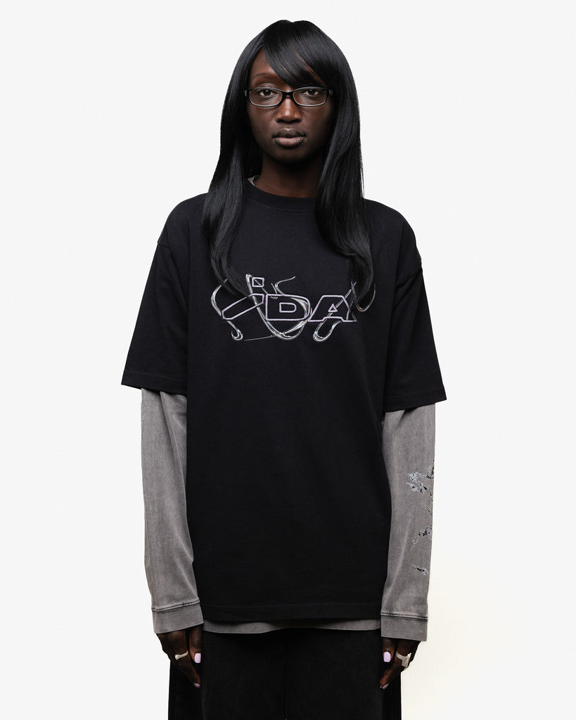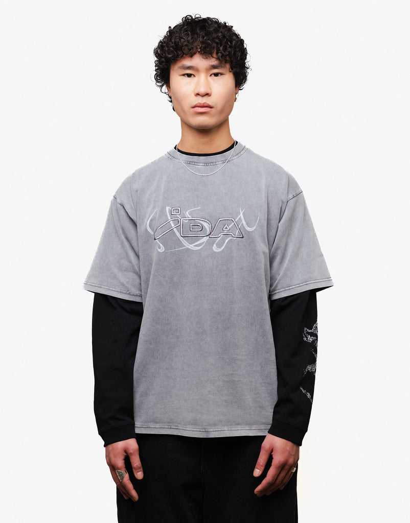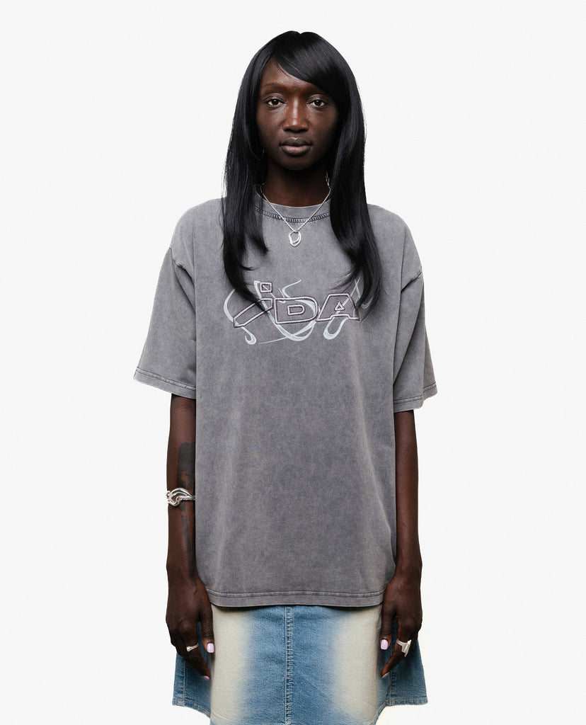 Washed gray oversize t-shirt with IDA print and embroidery on chest