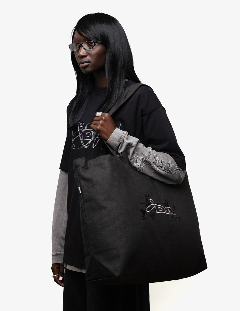 100% recycled cotton tote bag with IDA embroidery on one side.